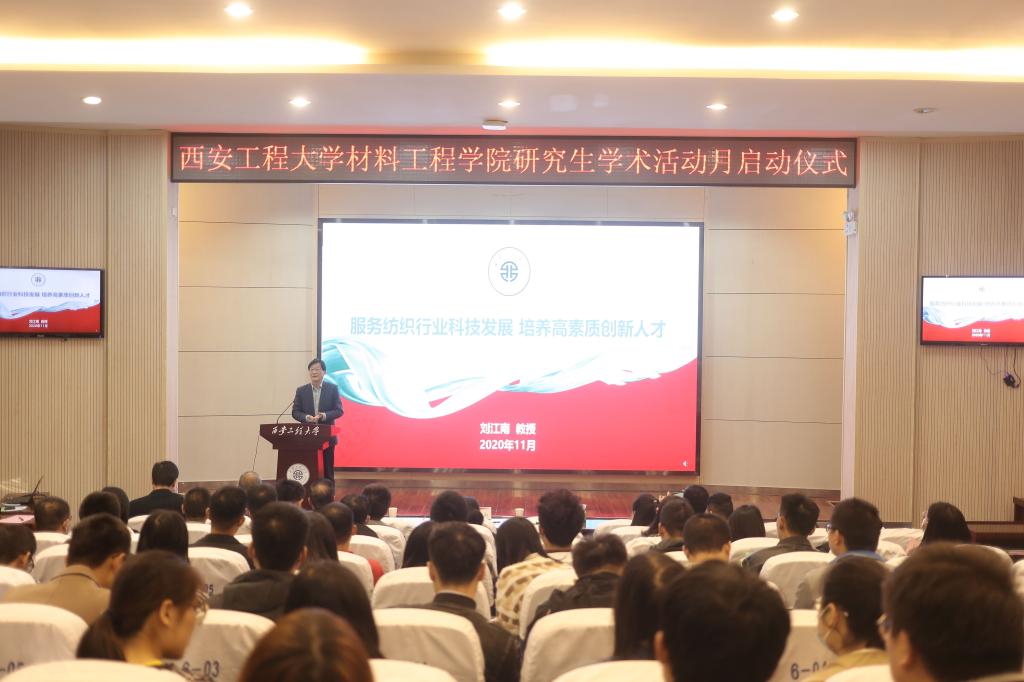 2020年11月10日下午,英国365集团在金花校区西纺报告厅成功举行了2020年研究生“学术活动月”启动仪式暨首场专家报告会。公司党委副书记赵小峰、研工部部长李伟、科技处副处长王志刚,英国365集团班子成员和教授委员会成员、硕士研究生导师、青年教师及全体研究生100余人参加了此次活动。启动仪式由委副书记刘畅主持。