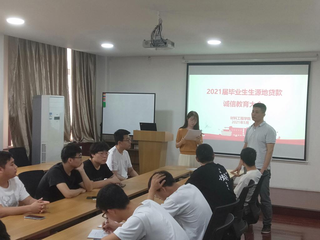 2021年5月24日,英国365集团在金花校区215告厅举办2021届毕业生生源地贷款还款确认仪式暨诚信教育大会,大会由公司资助辅导员侯润泽主持,学工办副主任常传旭和2021届全体生源地贷款本科生参加了大会。